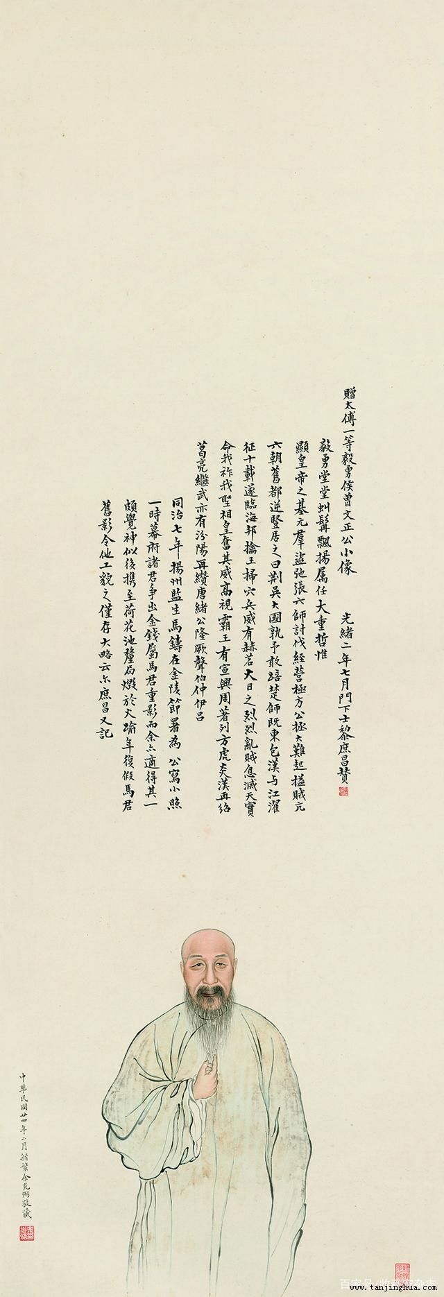曾国藩(1811 1872)是晚清时期颇具影响的政治家和文人。他,字涤生,号伯涵,湖南湘乡人,道光十八年(1838 年)进士,官至内阁学士、礼部侍郎、兵部侍郎、大学士,加太子太傅,著有《曾文正公全集》。关于他的政绩及其在学术、文学上的成就,已有不少学者对其展开深入研究,但对于颇具收藏与观赏价值的曾国藩肖像画,则较少有人关注。